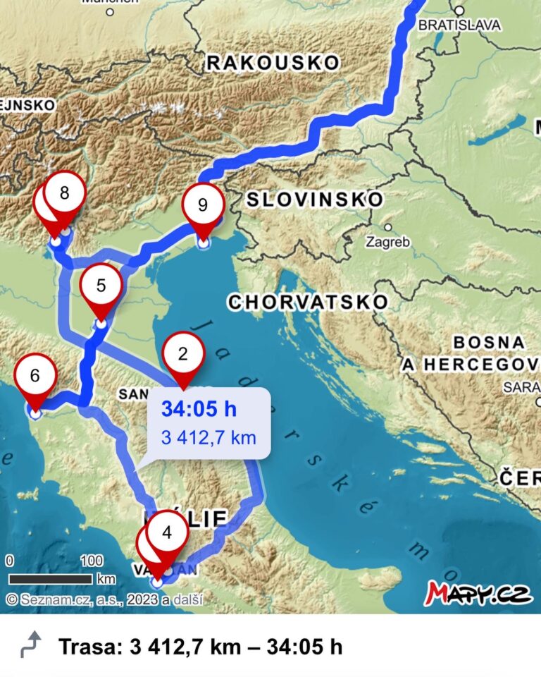 Na měsíc do Itálie jsme tedy odjížděli s rezervovaným ubytováním na prvních šest dní a s myšlenkovou mapou míst, kde bychom se rádi pohybovali: Rimini, okolí Říma, Pisa, Lago di Garda, sever Itálie.