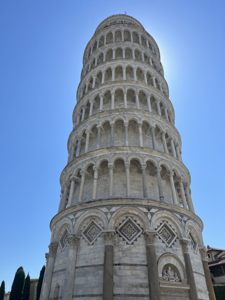 Výlet k šikmé věži jsme si naplánovali jako celodenní. K dopravě do města jsme využili vlak, který byl rychlý a přesný, ale tak překlimatizovaný, že jsem se bála, abychom cestou neumrzli. Pomalou procházkou jsme si prošli celé centrum a okolí Šikmé věže. Opět jsme podcenili zakoupení vstupenek, nejbližší volný termín byl za 5 hodin, a tak jsme se spokojili s prohlídkou zvenku.